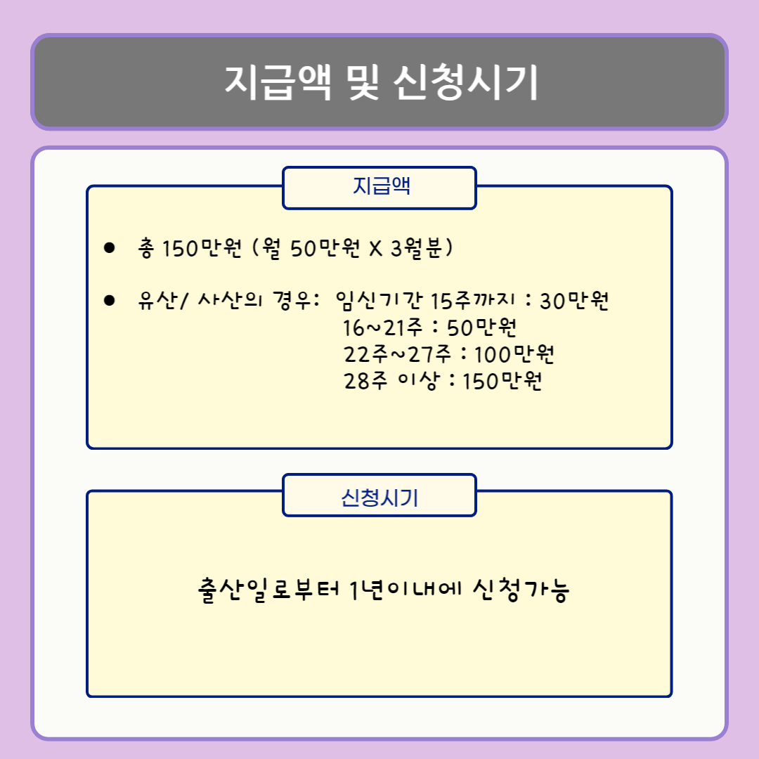 만약 기간을 놓친다면 150만원을 받을 수 없으니, 신청 시기는 출산 후 바로 하는 것이 좋겠습니다.