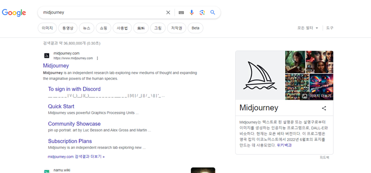 ① 포털 사이트에서 미드저니 검색