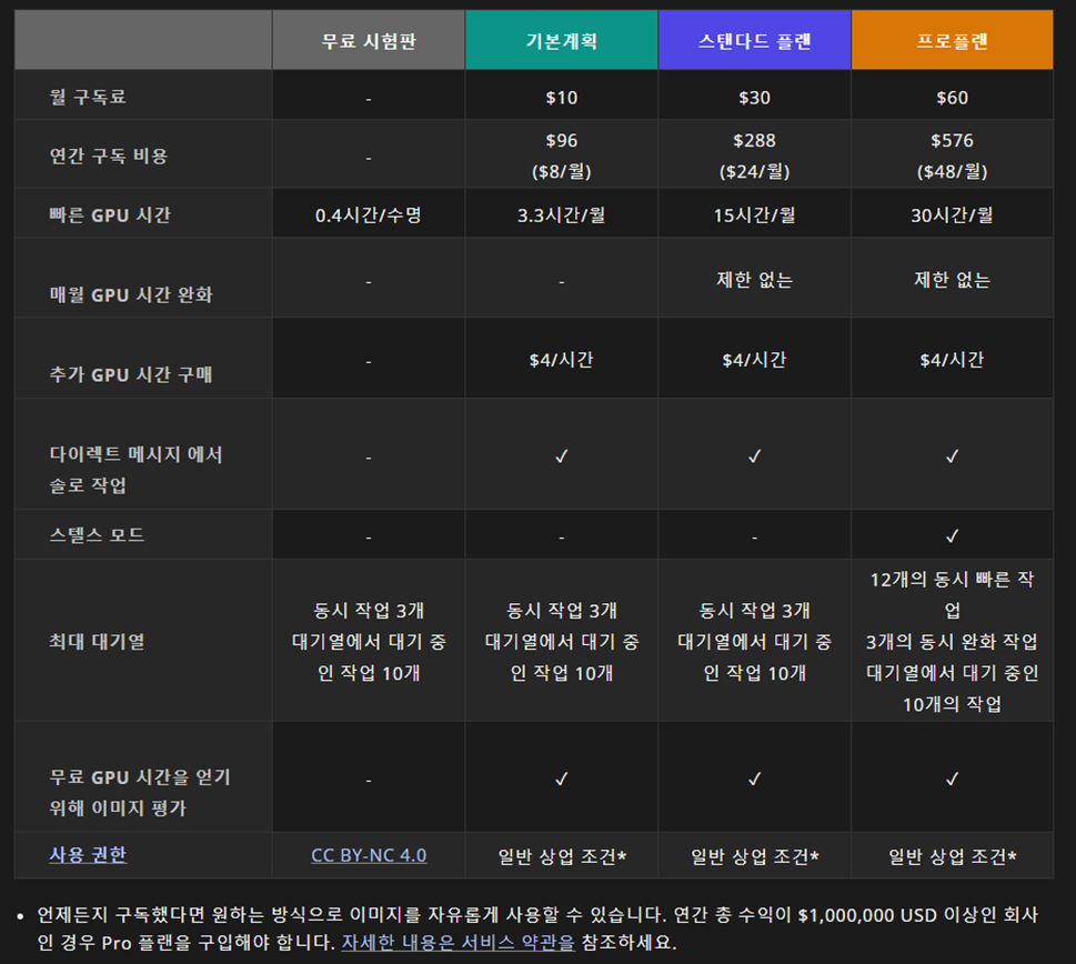 미드저니 구독 플랜