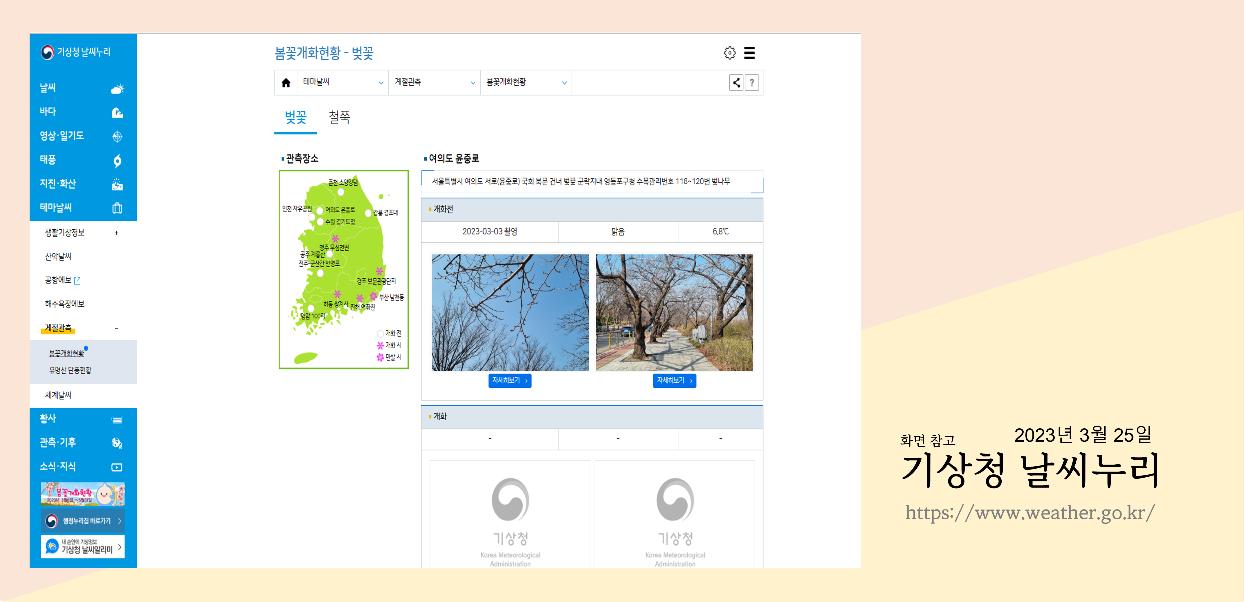 기상청에서 봄꽃 개화현황을 실시간으로 볼수 있습니다.