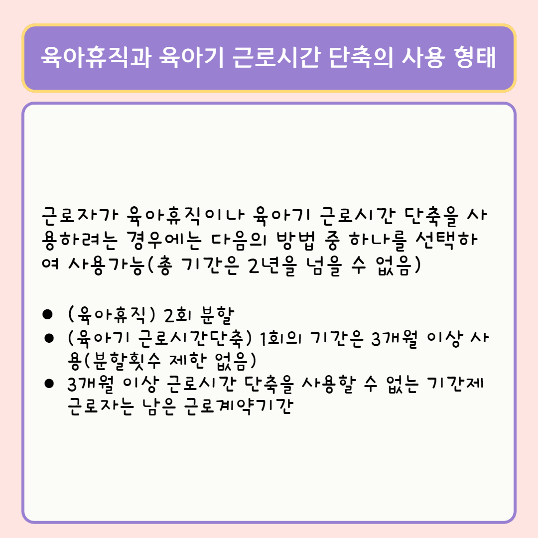 육아휴직과 연이어 사용할수 있기 때문에 이 두 가지를 합쳐서 총 2년이 넘으면 안 된다는 것입니다.
