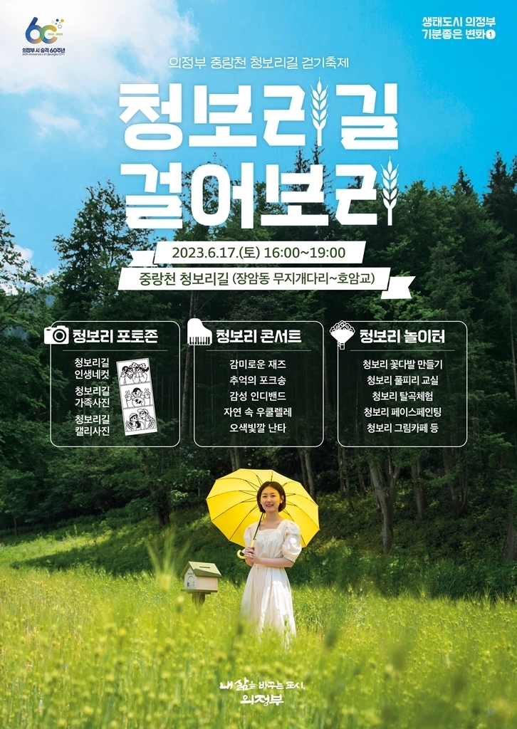 의정부에서 청보리길 걸어보리~슬로건으로 청보리길 걷기 축제가 6월 17일 늦은 오후 진행 됩니다.