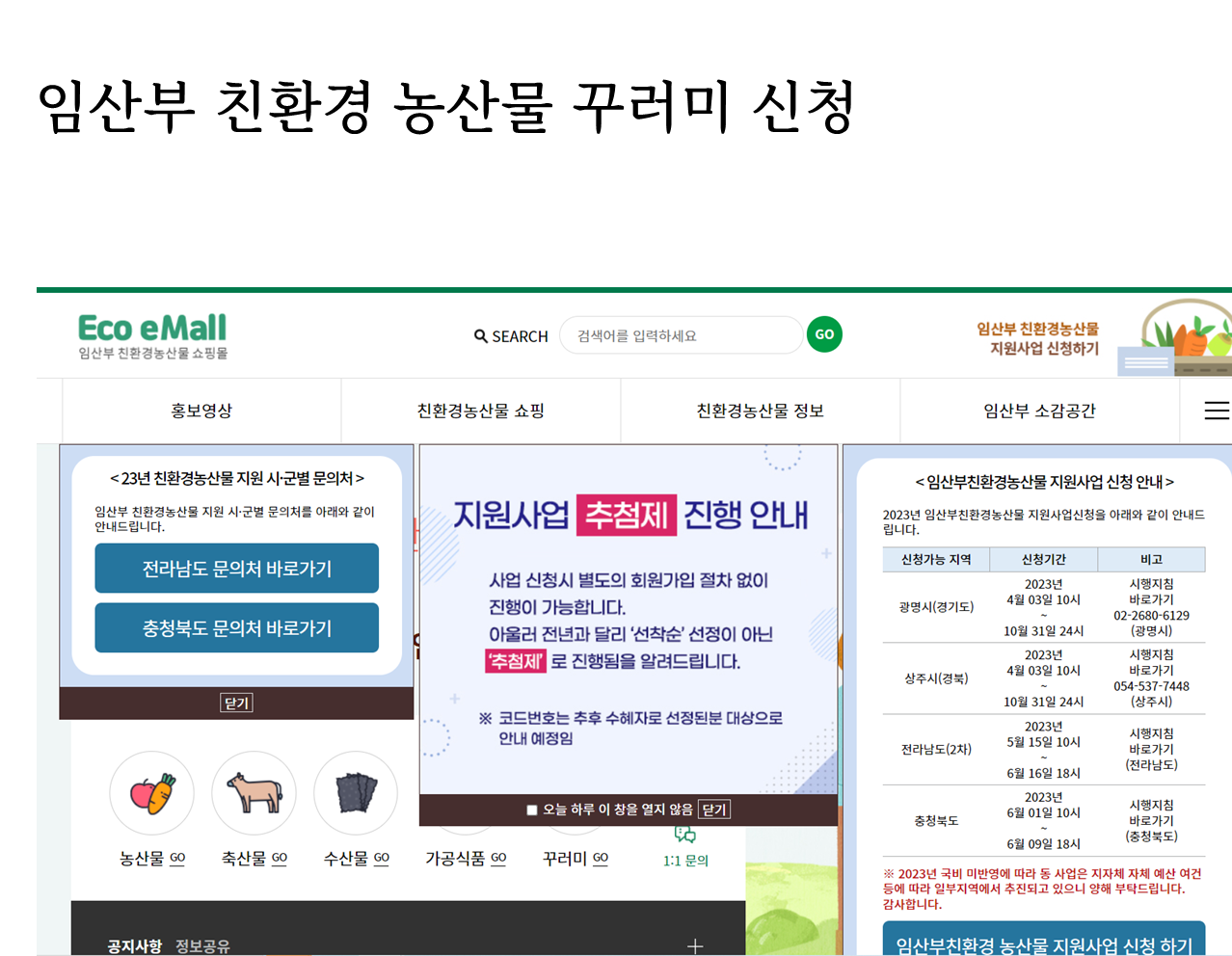 임산부 친환경 농산물 지원 사업은 시점에 따라 추가 되거나 변경 될수 있으니,