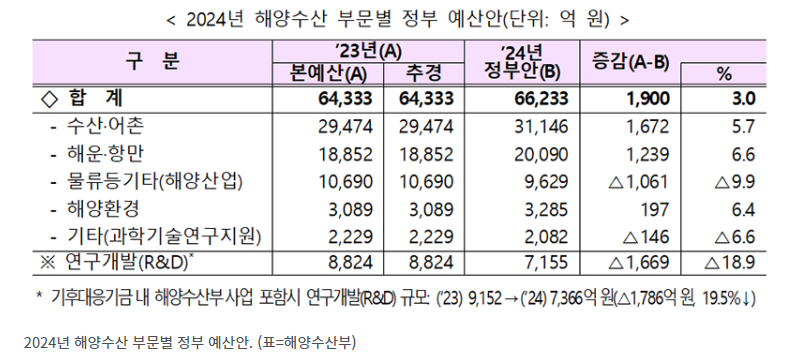 2024년 해양수산 부문별 정부 예산안  및 내용