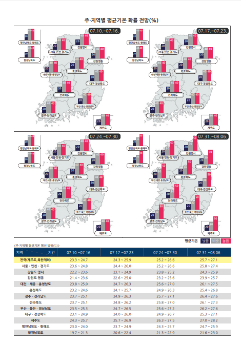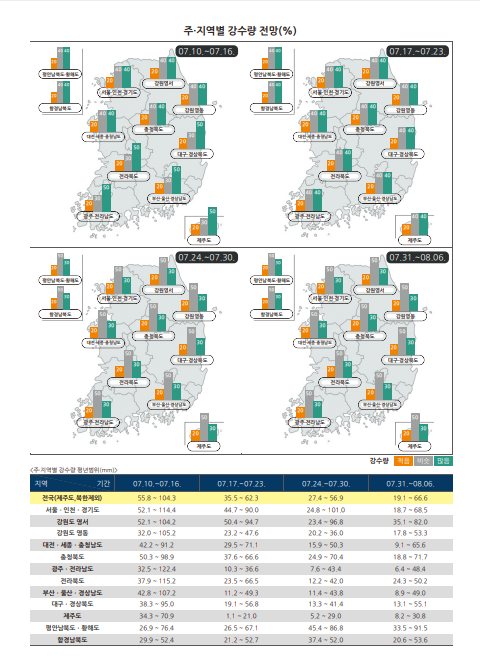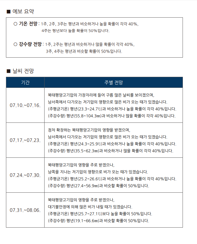 7월 기온 및 강수량 전망 ( 7.10~8.6)