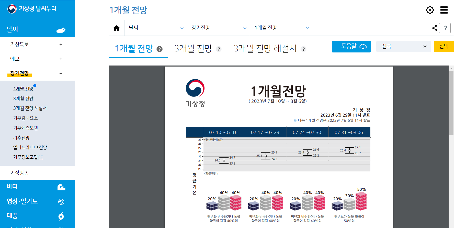 날씨 전망은 보고서 기준으로 작성되어, 홈페이지에서 다운로드하여 볼 수 있습니다.