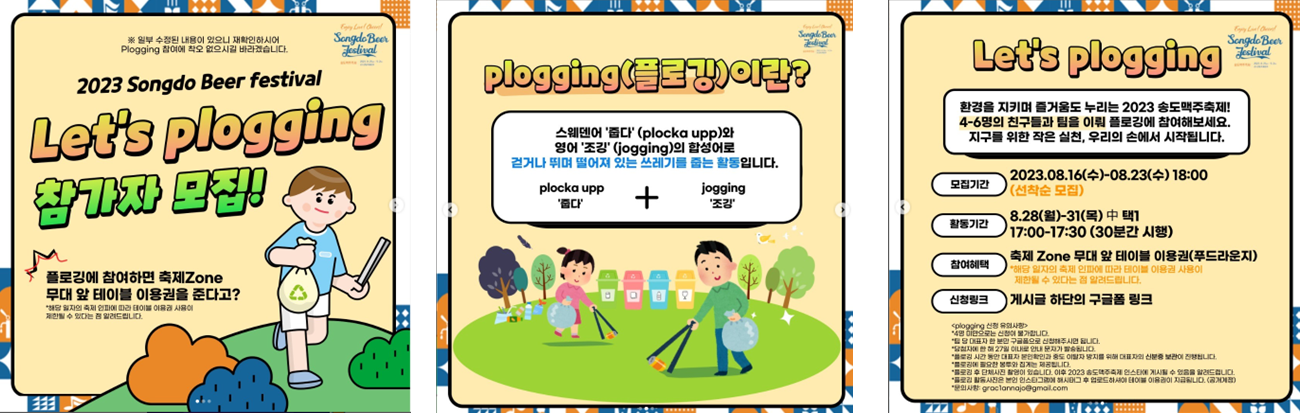 >>‘Let's plogging’ 신청 및 더 자세한 사항 알고 싶으시다면 ‘송도맥주축제 공식인스타그램’ 참고 @songdo_beer_festival